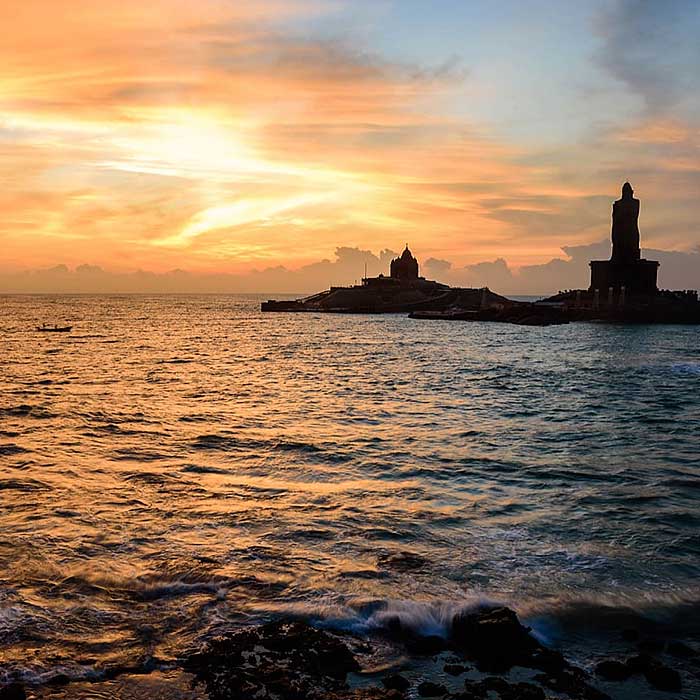 Kanyakumari is a tiny coastal town in Tamil Nadu that boasts rugged scenery, palm-fringed beaches, coconut-lined paddy fields, and iconic structures. It used to be called 'Cape Comorin' or 'The Land's End.' It's the ideal combination of natural wonders and architectural marvels. Kanyakumari is a haven for environment lovers, history aficionados, and tranquilly seekers, with some of the most spectacular waterfalls and old temples in the world. The location has pleasant weather from October and March, which is Kanyakumari's prime season. It is conveniently accessible by all kinds of transportation from the country's major cities and communities.